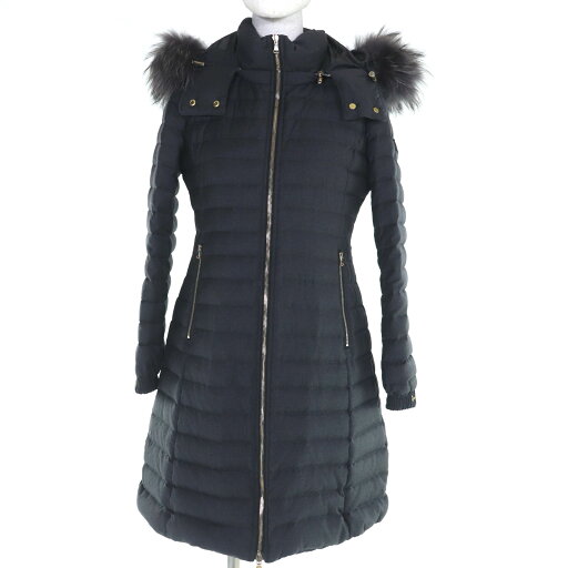 美品▼TATRAS タトラス MTA4SH4193 ウール カシミヤ ロゴワッペン・ファー付き フーデッド ダブルジップアップ ダウンジャケット ネイビー 2 正規品 メンズ【中古】