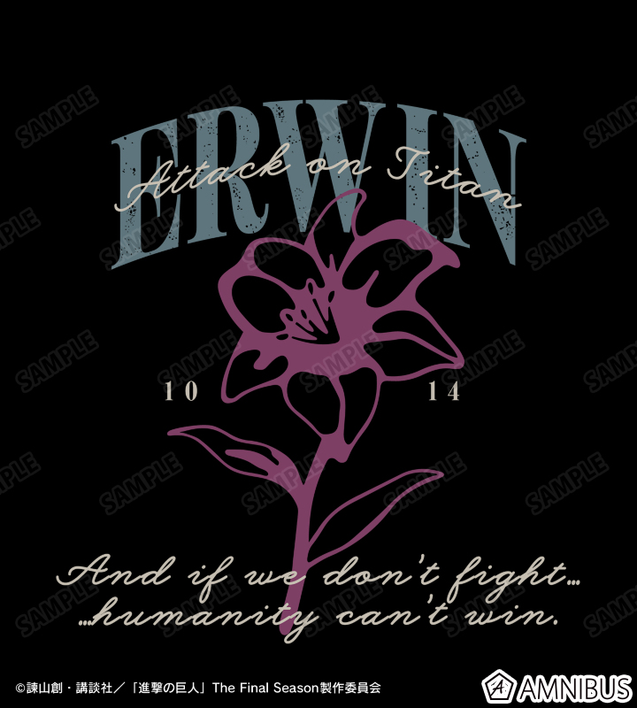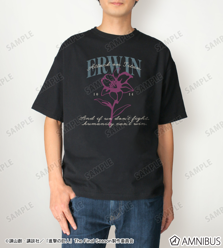 TVアニメ『進撃の巨人』から日常で使える統一感をテーマにしたデザインシリーズ「ar-Unity」のアイテム「エルヴィン ar-Unity BIGシルエットTシャツ」の登場です。