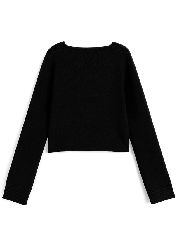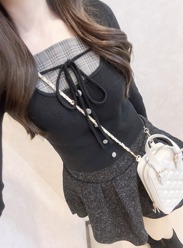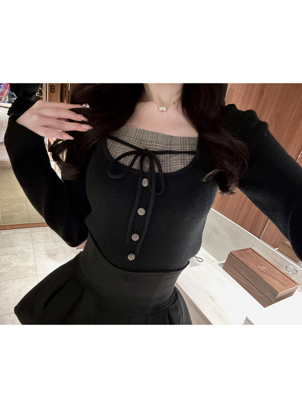 異素材をドッキングを施したレイヤード風デザインのニットトップス。