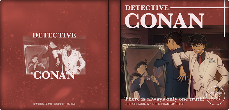 「名探偵コナン」より美麗なイラストを使用した、大きな缶バッジとアクリルのクリアカードがセットになった、立てて飾れるグッズセットが登場!