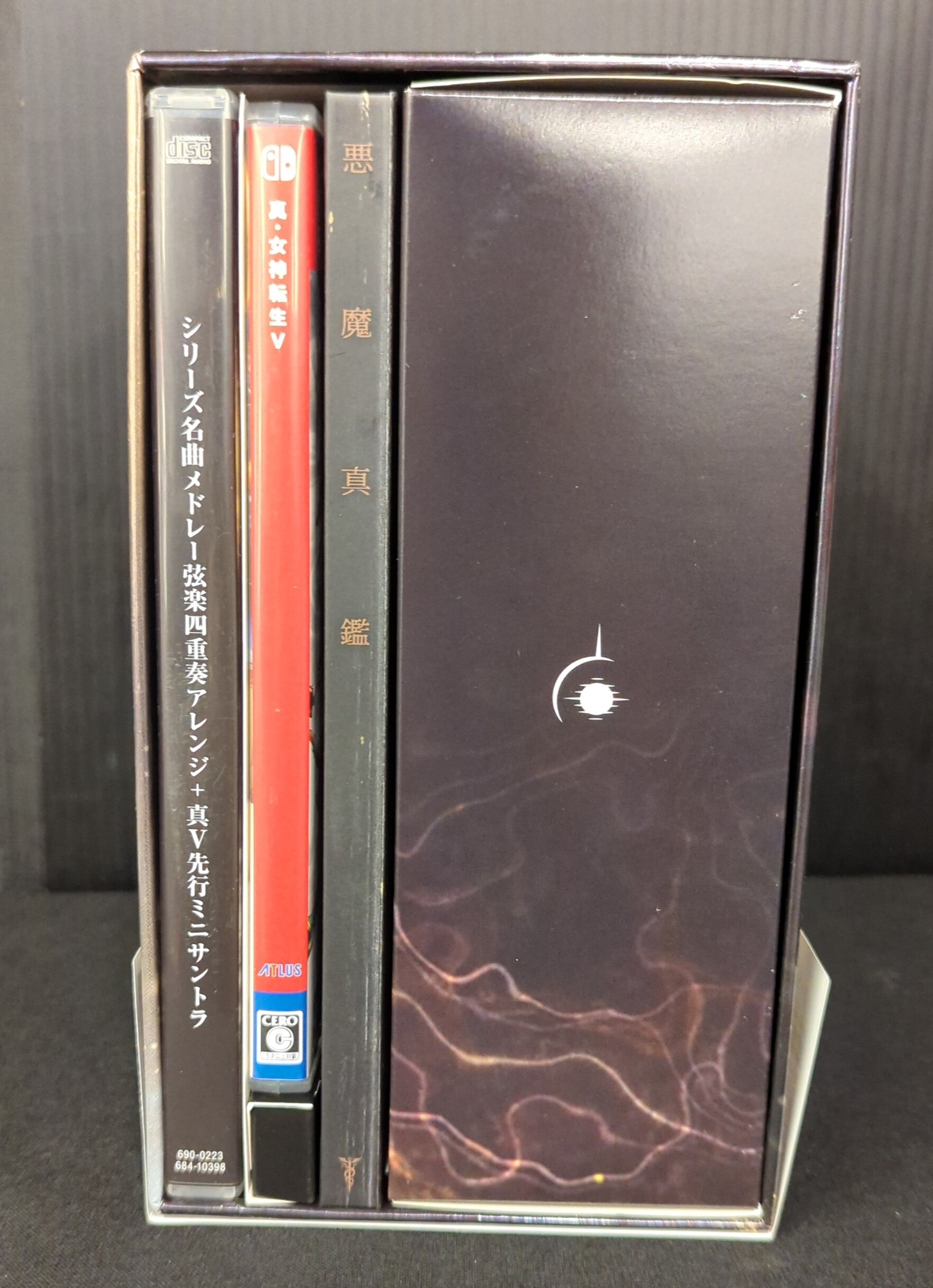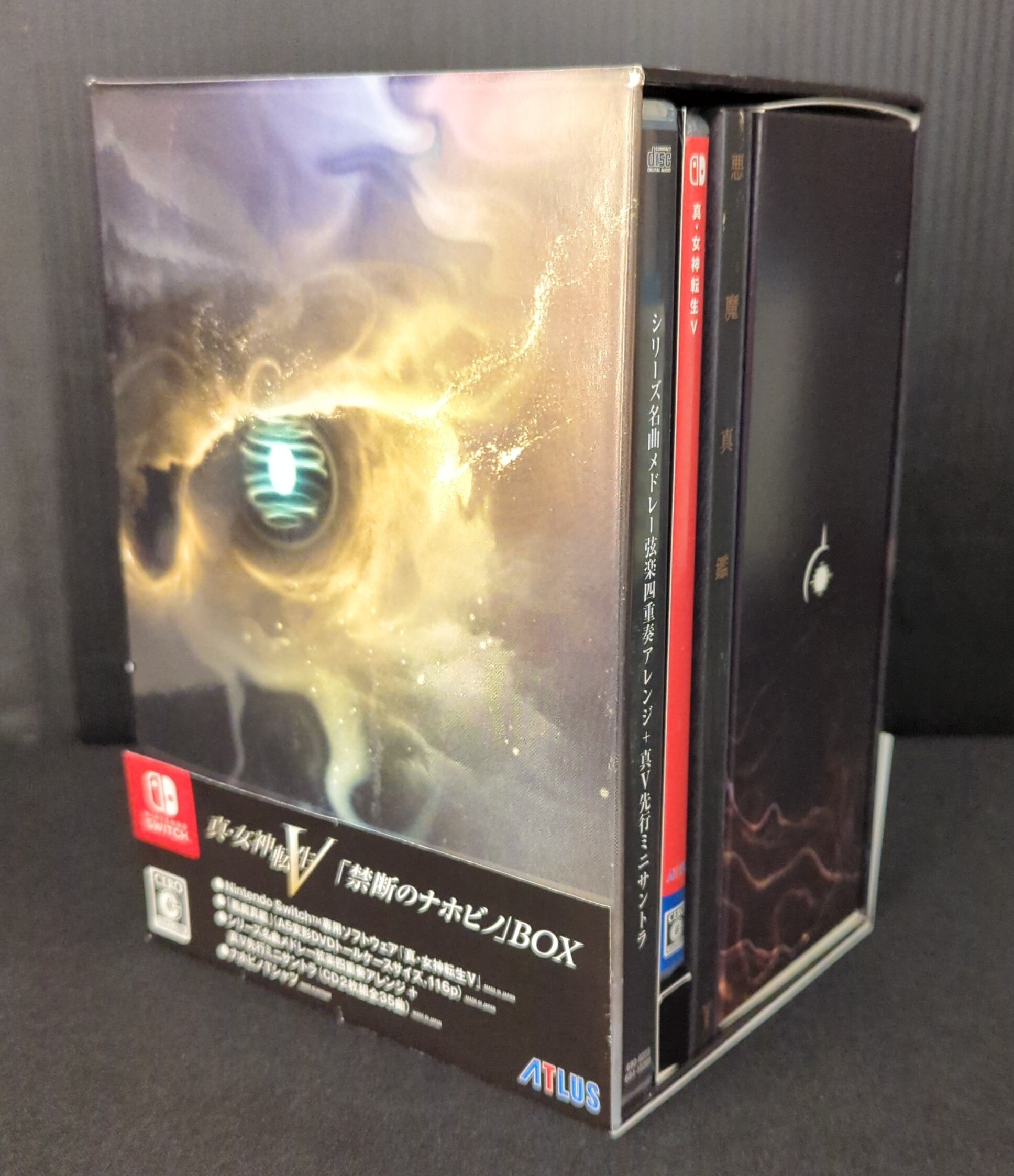 商品状態: (5)ソフト:並 解説等:並 帯:イタミ ケース類:イタミ大 特典:サントラCD2枚組、悪魔真鑑、Tシャツ付き