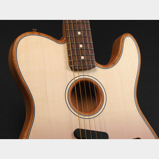 アイコニックなテレキャスターのデザインと演奏感をエレアコスタイルに落とし込んだ本機”Acoustasonic Player Telecaster”は、フルホロウ構造のマホガニーボディにModern “Deep C”シェイプのマホガニーネックを組み合わせて作り上げられています。