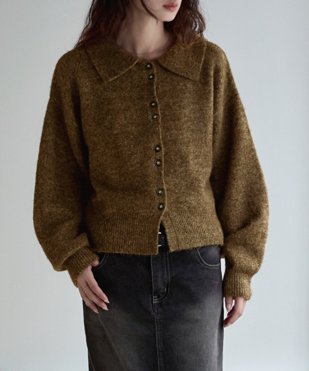 etoll. エトル ニットの柔らかな素材感とスマートな襟デザインでこなれる、ショート丈のニットカーディガン。