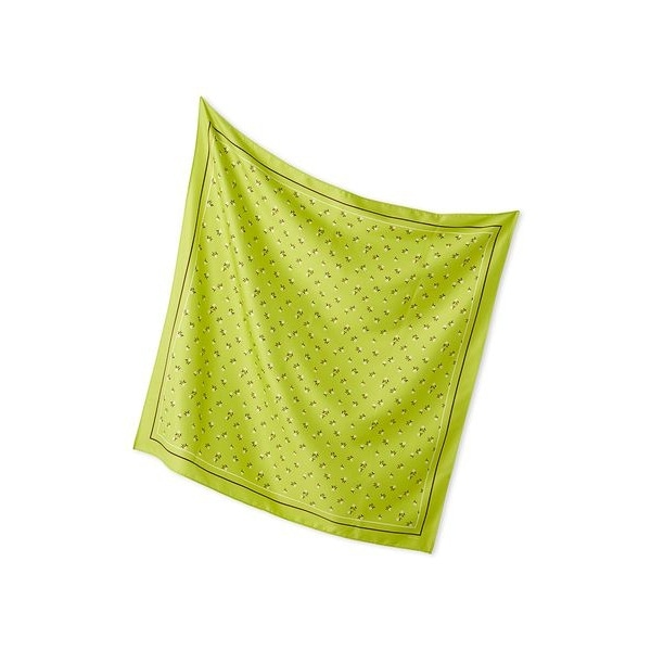 ツヤ感のある上品なサテン調の素材に、差し色になるカラーが目を惹くスカーフは、小花とラインを効かせたプリントがキュート。