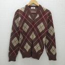 H■80-90s■ヴァン/VAN JAC アーガイル柄 Vネックニットセーター【M】茶/MENS■25【中古】