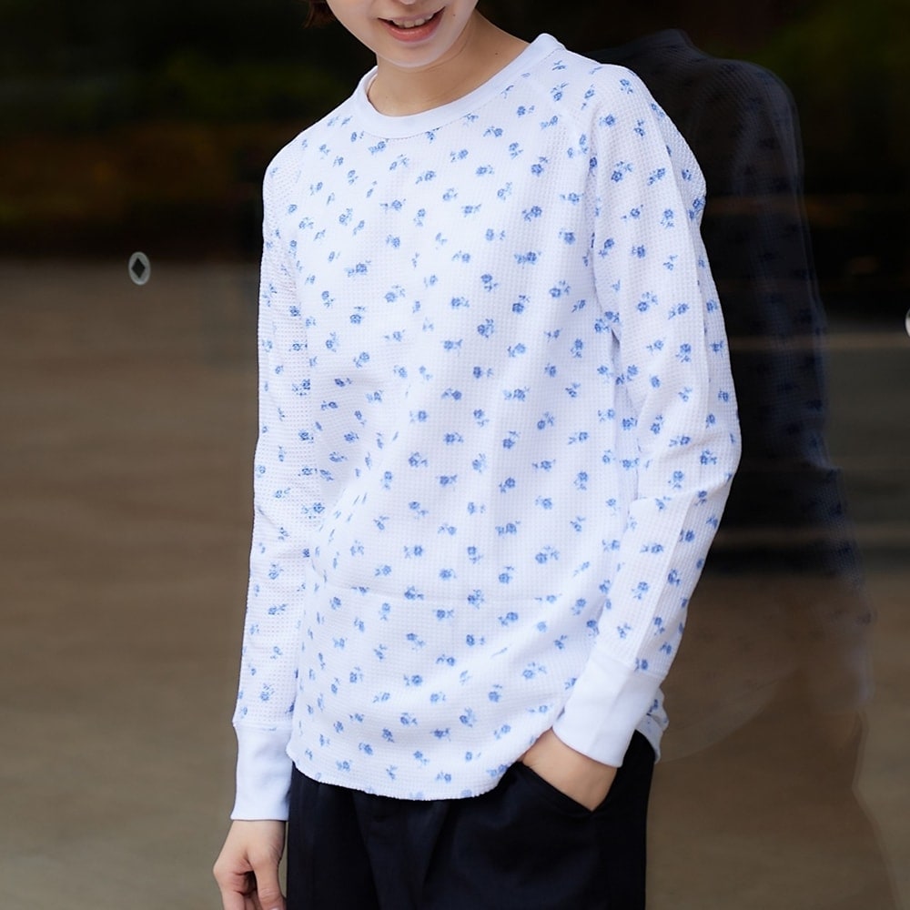 ワッフル花柄クレリッククルーL/S-Tee(パック)