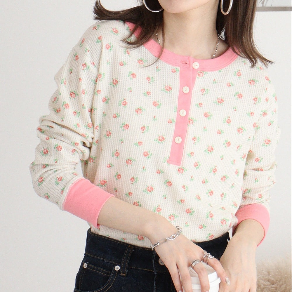 JEMORGAN レディース 花柄クレリックヘンリー L/S Tee