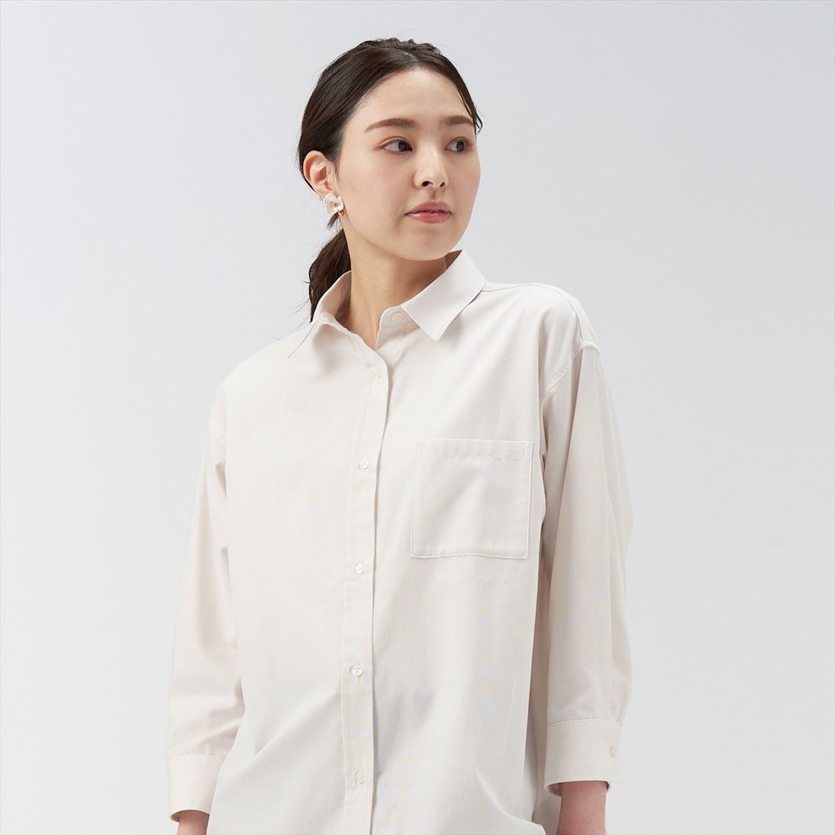 Pitta Re:) 綿100% やわらかガーゼ スタンドカラー 七分袖シャツ