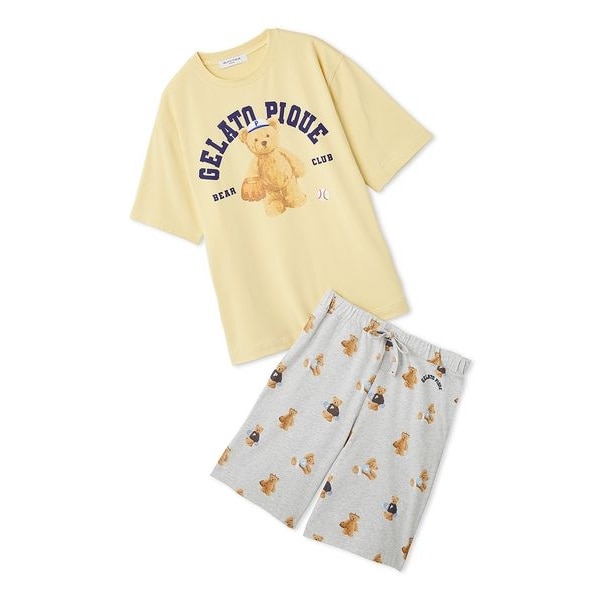 色々なスポーツを楽しむピケベアをテーマに、トレンドのスポーツテイストを取り入れたシリーズです。夏らしい明るい配色のTシャツ&ハーフパンツに、ベースボールを楽しむベアの絵柄をプリント。ONLINE限定のHOMMEサイズのセットアップです。Tシャツと色違いのハーフパンツは、3種類のベアが総柄プリントになっています。いずれもポーズやお顔の表情までこだわった、gelato piqueらしいキュートな絵柄。LADIES’サイズとのリンクコーディネートもお楽しみいただけます。