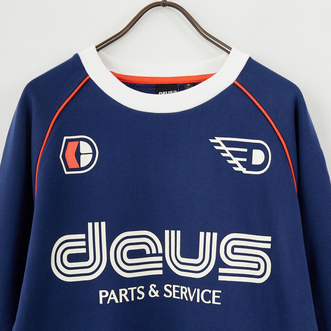 チーム・デウスがオフロードカルチャーの伝統を再解釈し、90年代モトクロスの空気感を現代に落とし込んだ一着。ゆったりとしたリラックスフィットのクルーネックスウェットに、フロントとバックに施された印象的なアートプリントが存在感を放ちます。肘部分にはパッチを、身頃にはパネル切り替えを配したディテールが、スポーツ由来の機能美をさりげなく表現。素材にはコットンとナイロンを混紡した裏起毛フリースを使用し、抜群の温かさと軽やかな着心地を両立。ガーメントウォッシュ加工によってヴィンテージの風合いを演出し、着古すほどに味わいが増す一着です。