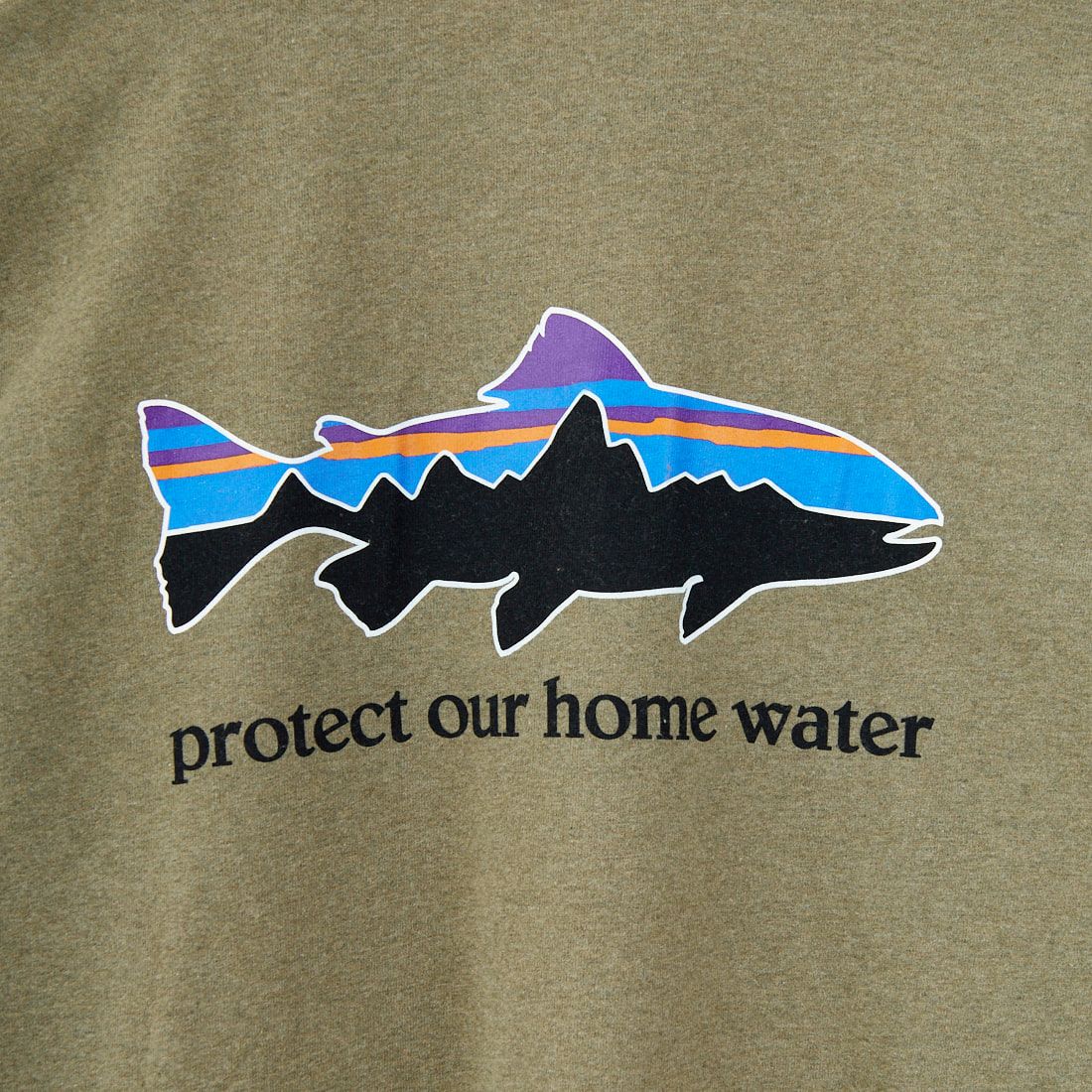 端切れと回収されたペットボトルを利用することによりバージン原料への依存を削減。リサイクル素材を100%使用し、パタゴニア製品の中で最もカーボンフットプリントを抑えたTシャツです。リブニットの襟ぐりとテープ処理の肩の縫い目により形くずれしにくく快適な肌触りが特徴。フェアトレード・サーティファイドの縫製を採用しています。