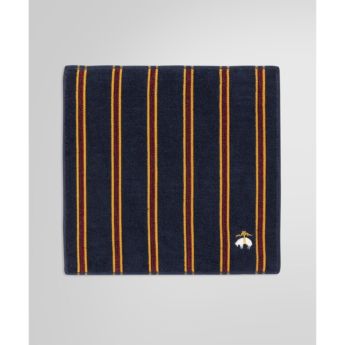 スーピマコットンを使用したミニタオル超長綿であるスーピマコットンは、非常に強く、柔らかく、弾力性のある繊維です。他のコットンよりも柔らかい肌触りと強い耐久性、発色の良さがあります。プレッピーなタイストライプ柄、2トーンカラーのGF(ゴールデン フリース)マークの刺繍がアクセントに。何枚あっても便利なミニタオルはプレゼントにもお薦めです。