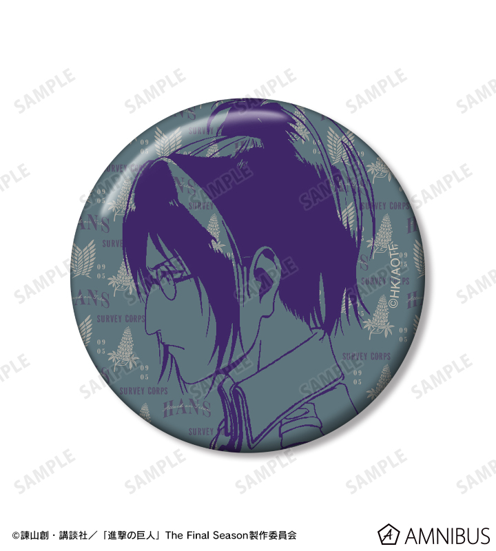TVアニメ『進撃の巨人』から日常で使える統一感をテーマにしたデザインシリーズ「ar-Unity」のアイテム「ハンジ ar-Unity 缶バッジ2個セット」の登場です。