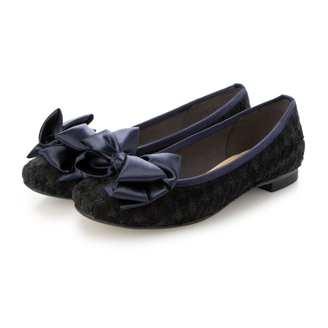 花のような大きく立体的なリボンが目を惹くバレエシューズ。