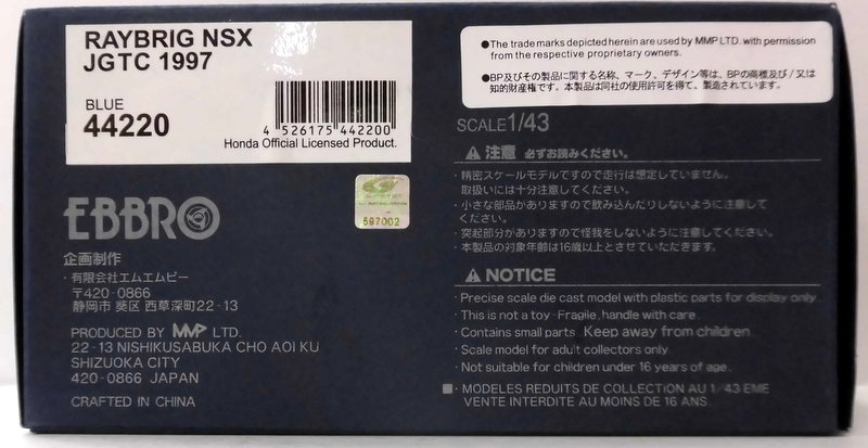 エムエムピー 1/43 EBBRO Avex DOME MUGEN NSX JGTC 1997 #18 Blue 44219