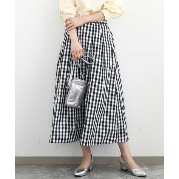 【スローブイエナ】ギンガムチェックタフタランダムタックスカート シルク混 38
