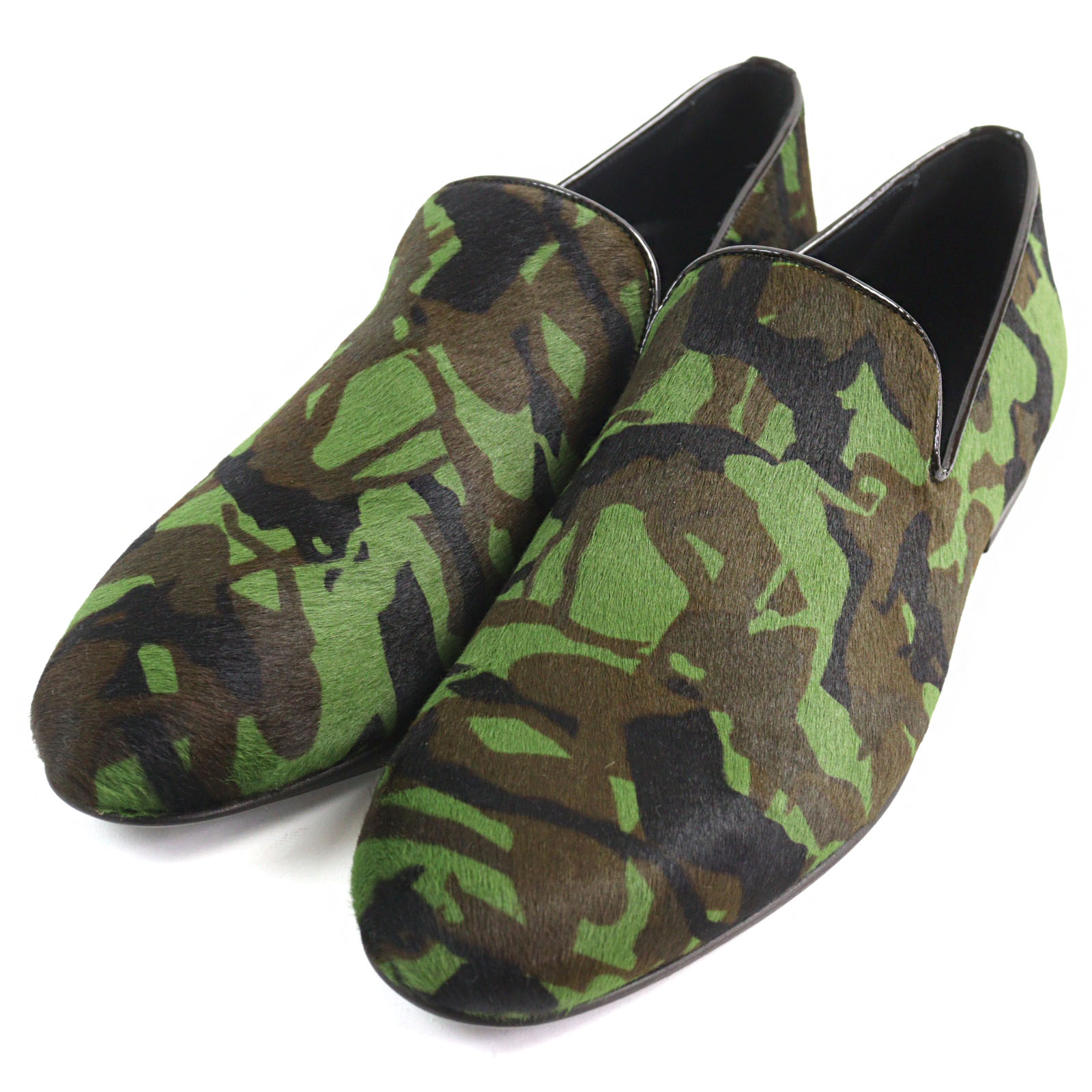 【ドンドン見直し】未使用品○JIMMY CHOO ジミーチュウ カモフラ柄 迷彩 ハラコレザー スリッポン ローファー レザーシューズ グリーン系 43.5 箱付き イタリア製 メンズ