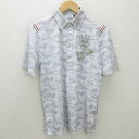 C■フィラゴルフ/FILA GOLF 胸刺繍 半袖ポロシャツ/ゴルフウェア ボタンダウン【L】白/MENS■111【中古】■