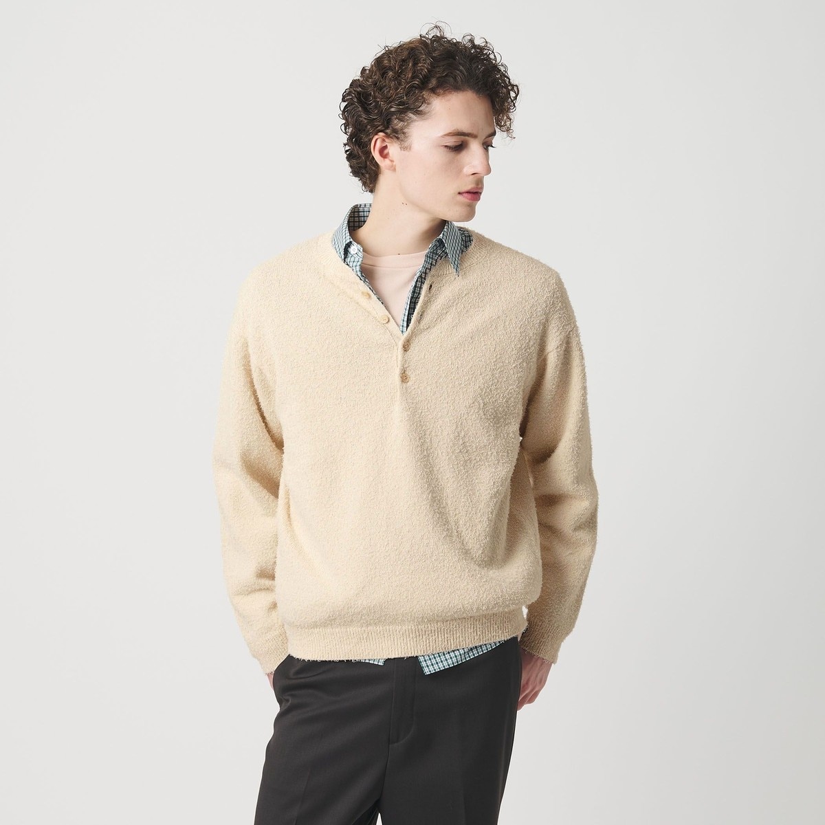 クルーネックに慣れた方にも新鮮さを感じていただける、4ボタンのヘンリーネックデザインを取り入れたニット。