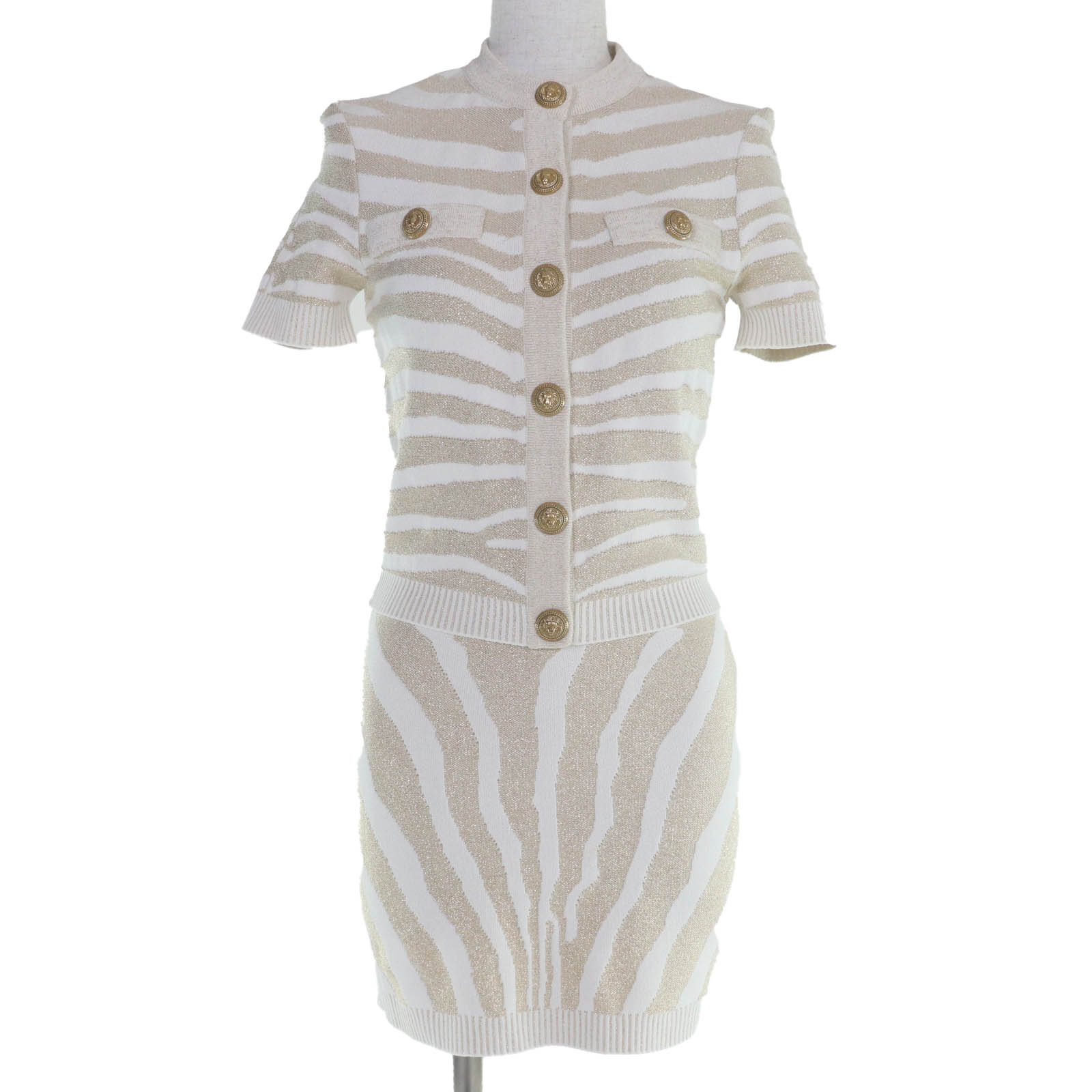 極美品☆BALMAIN バルマン SI150CA00/PA087C320 ラインストーン リボンツイード ジャケット・ショートパンツ セットアップ ピンク 34 レディース【中古】