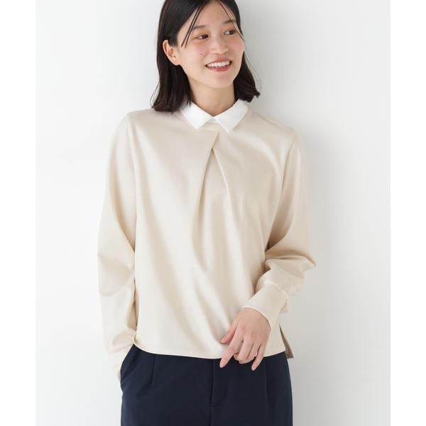 ◆ストレッチポンチシャツカラードッキングプルオーバー