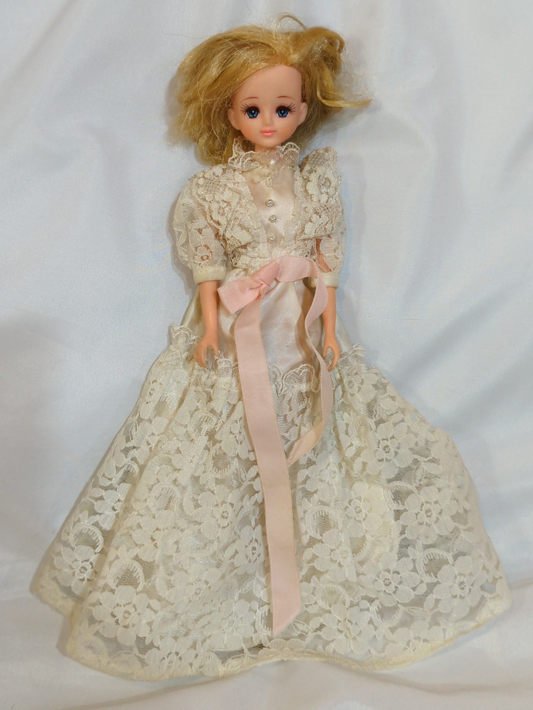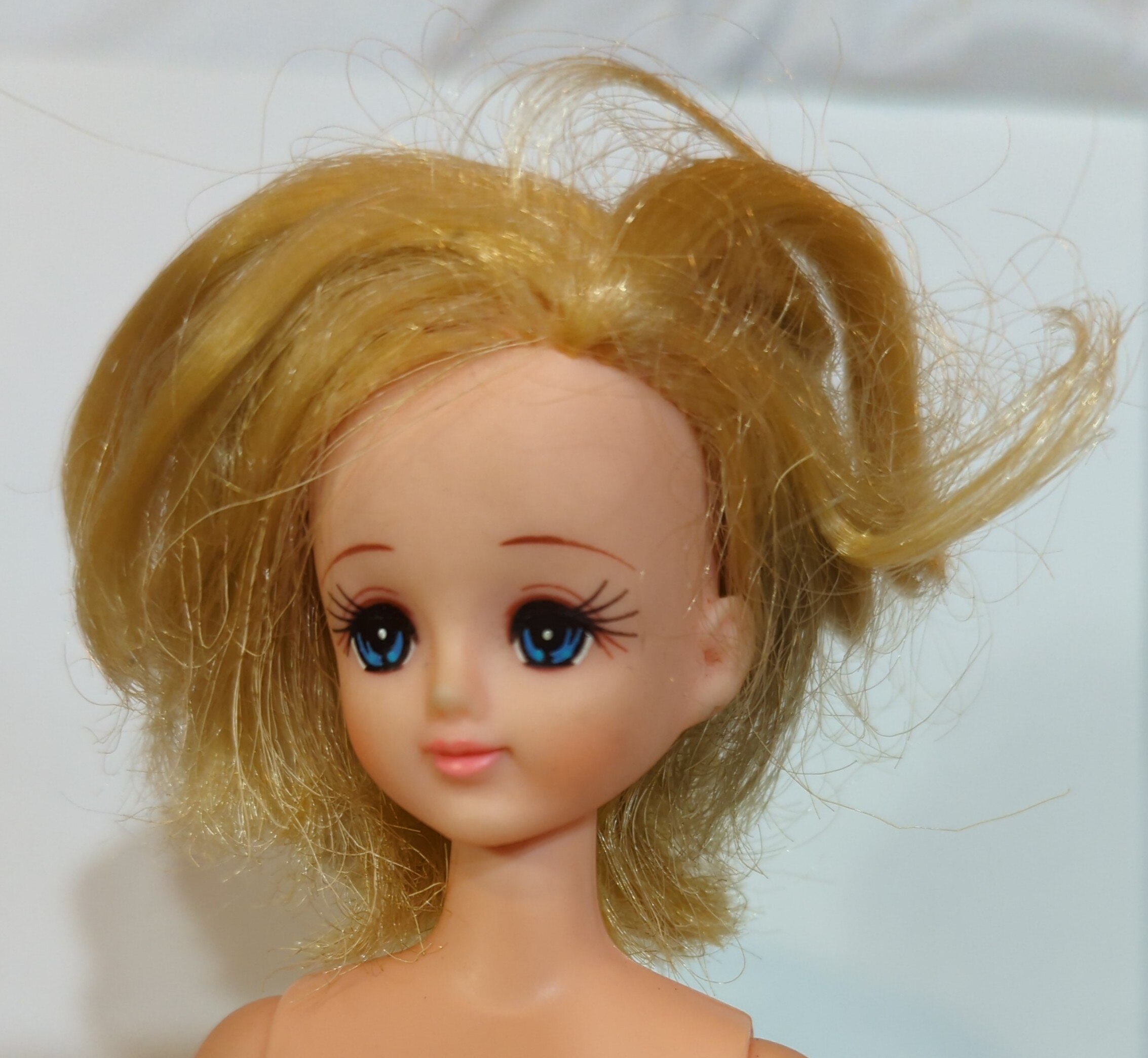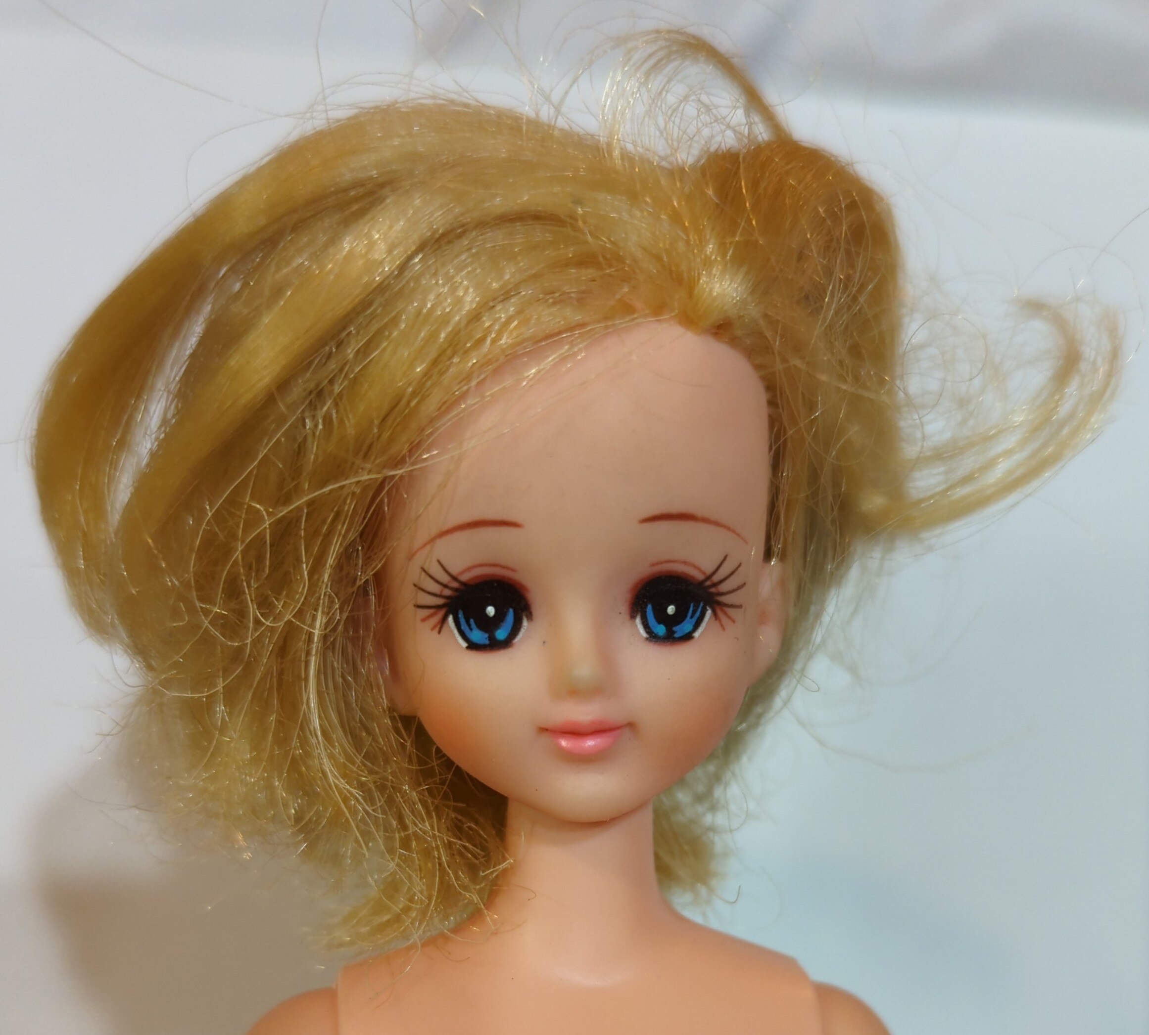 商品状態: 服付き/顔汚れ/腕・脚汚れ/髪いたみ・一部変色/左腕やや緩め/ボディ変色/ドレス汚れ・所々小さな穴あり・リボン解け