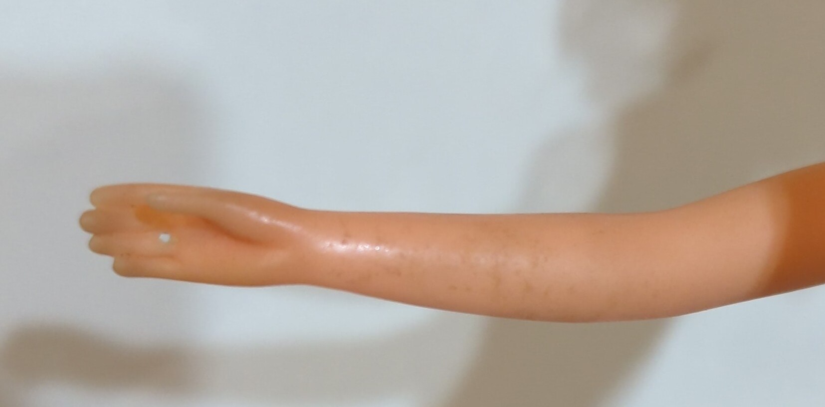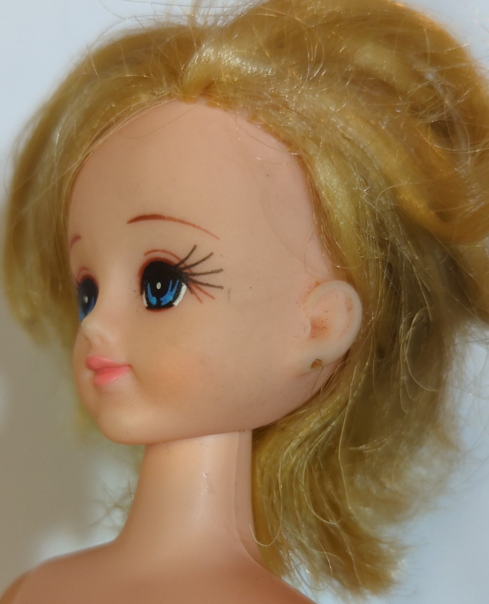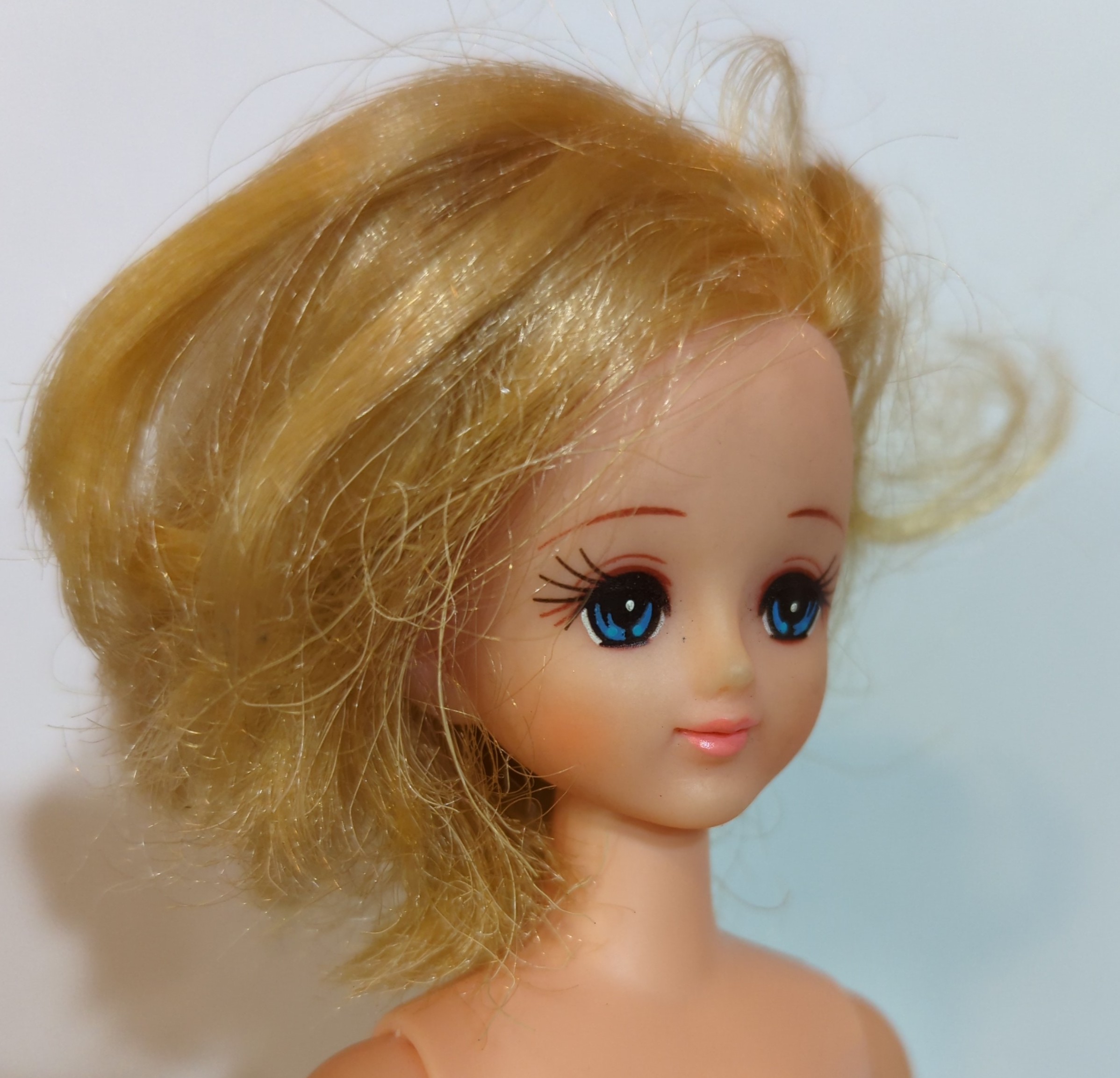 商品状態: 服付き/顔汚れ/腕・脚汚れ/髪いたみ・一部変色/左腕やや緩め/ボディ変色/ドレス汚れ・所々小さな穴あり・リボン解け