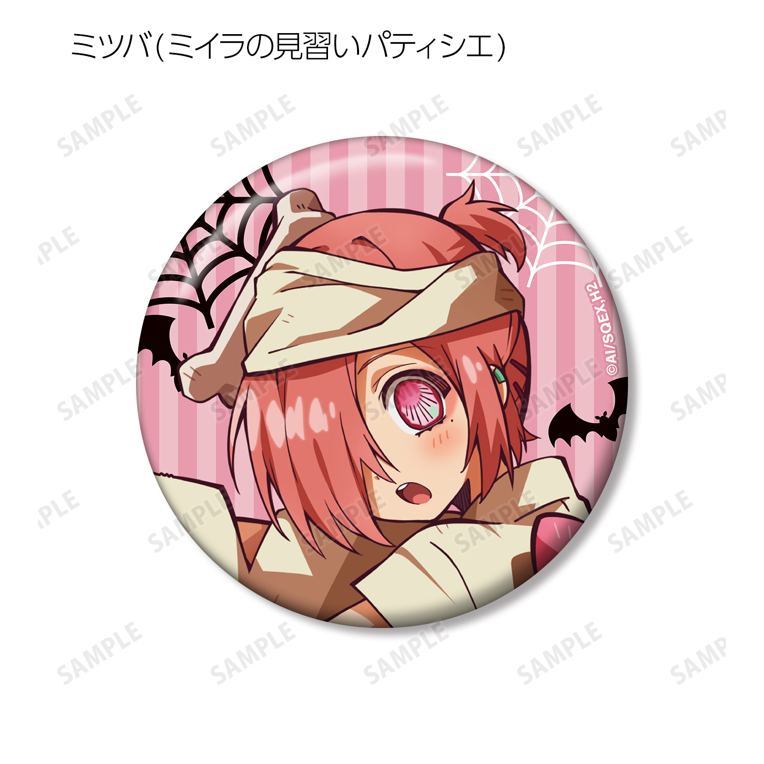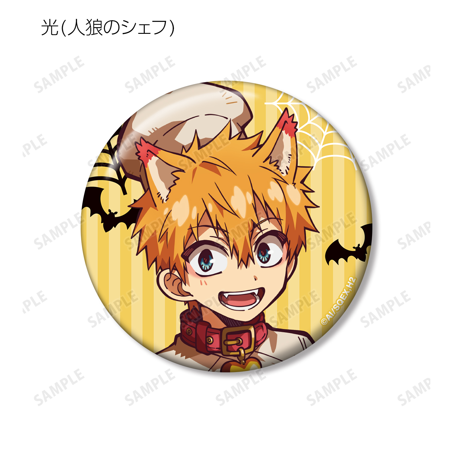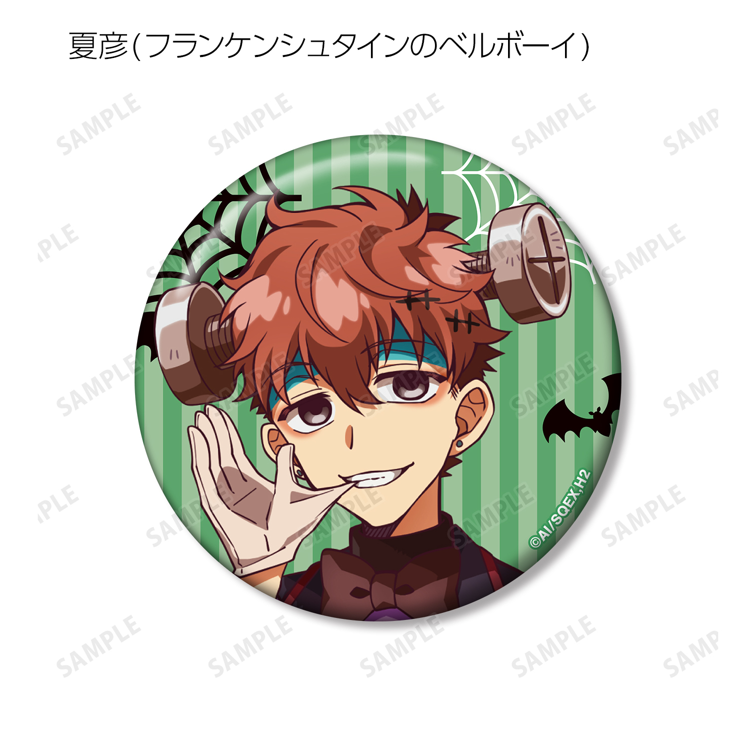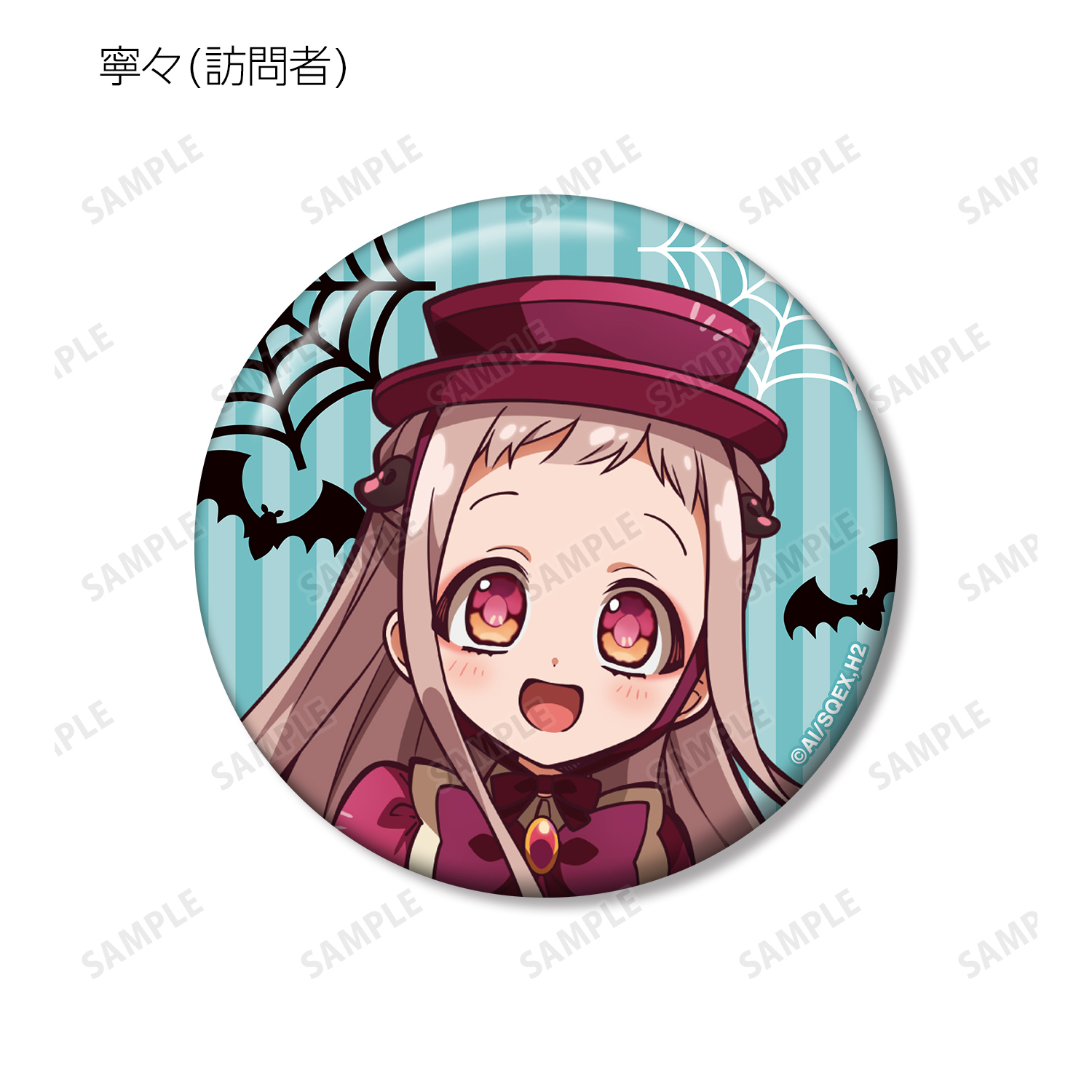 花子くん(吸血鬼の支配人)、寧々(訪問者)、光(人狼のシェフ)、輝(祓魔師)、もっけ(ドアマン)、ミツバ(ミイラの見習いパティシエ)、つかさ(ホテルの幽霊)、桜(お客人)、夏彦(フランケンシュタインのベルボーイ)、葵(妖精のハウスメイド)、茜(悪魔のフロントボーイ)、土籠(コンシェルジュ)のイラストを缶バッジに仕上げました。