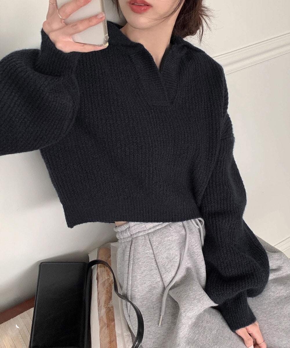 襟付きスキッパーニット