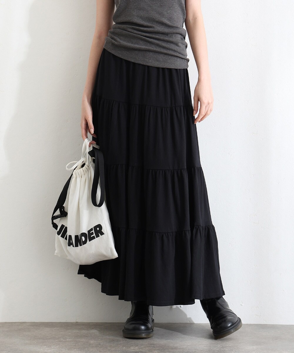 華やかなティアードデザインが動きに軽やかさを与えるスカート。
