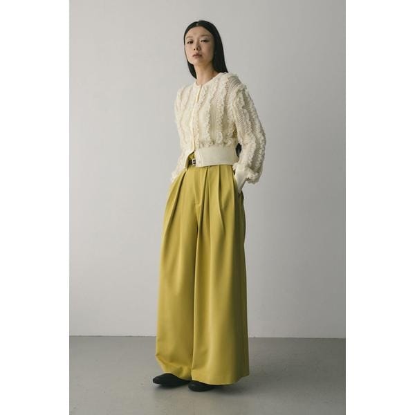 L/BEG,YEL:モデル身長172cm(Mサイズ着用)BLK:モデル身長168cm(Mサイズ着用)フロントにタックを入れ、しっかりとワイドシルエットに仕上げたモード感のあるハンサムなワイドスラックス。シワになりにくいしなやかな素材を使用しており着回し力抜群な一枚です。トップスインしてすっきり着こなすのもおすすめです。ストレッチなし、透け感なし。【お手入れ方法】マシンウォッシュ可