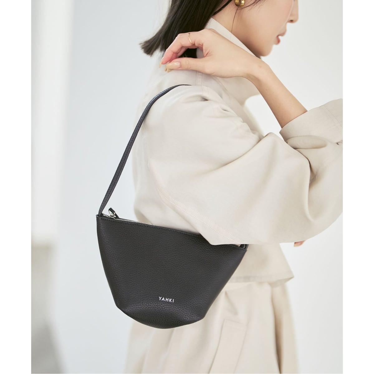 底で絞ったような立体的なフォルムが特徴で、ふんわりとしたシルエットを生み出します。小ぶりながらも存在感があり軽やかに手元を彩るデザインです。