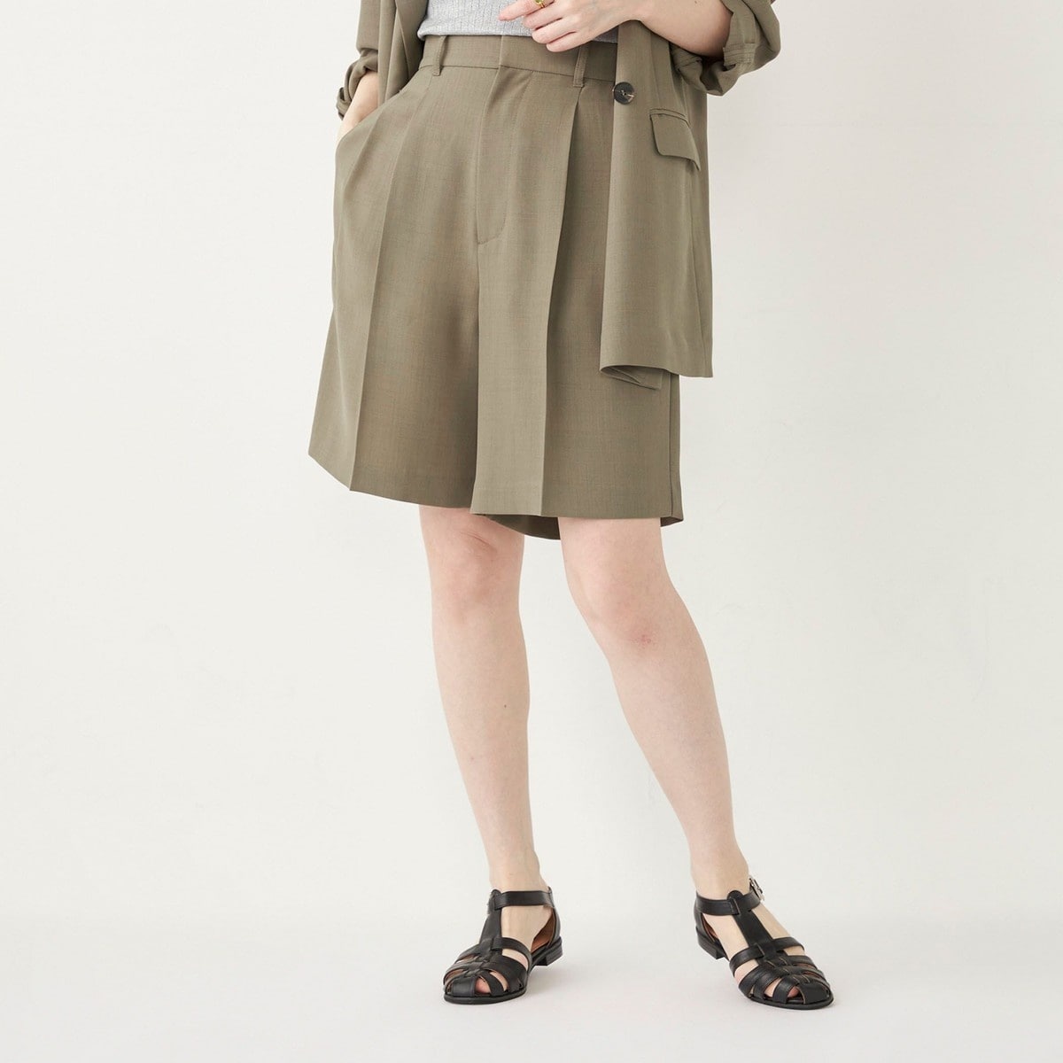シャリ感のある肌触りが涼し気なタックショートパンツ。