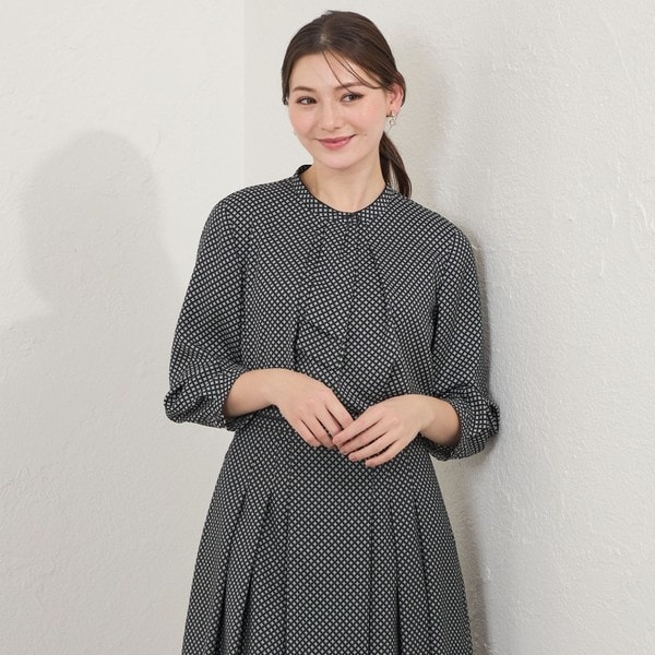 AMACAが得意とする幾何柄をあしらった、上品なボウタイブラウス。