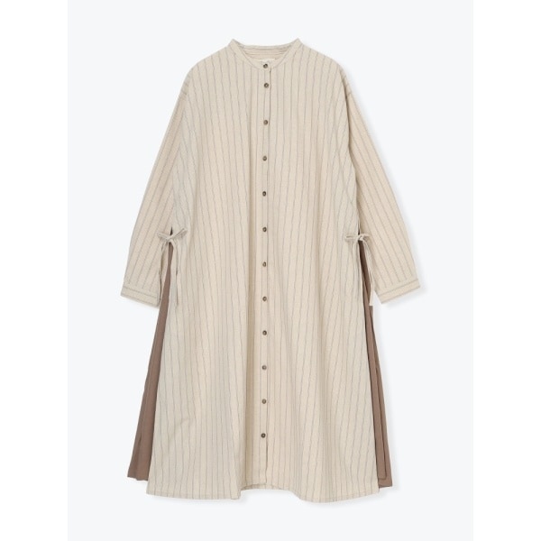 タグ付き 日本製 MidiUmi フロントシームドシャツワンピース ベージュ バンドカラー 羽織