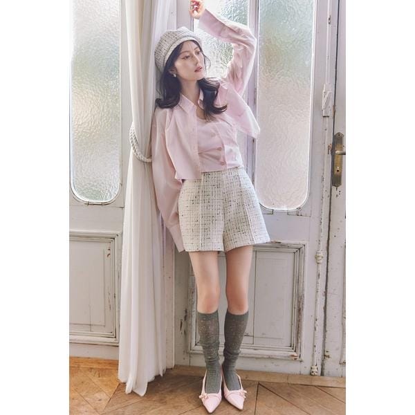 【春の雰囲気漂うツイードショートパンツ】■ポイントエレガントな印象のツイードショートパンツ。ウエストにタブを施し、ウエスト位置をマークし腰位置を高くみせてくれます。ハイウエスト仕様で様々なトップスとの相性も◎足長効果も抜群なレディーなショートパンツです。■ディテールしっかりとした生地感ですが、硬すぎずボディーラインをキレイに見せてくれるのがポイントです。裾巾は細すぎない設定で、太ももを細く見せてくれる視覚効果も◎■スタイリング同シリーズの110JS530-0351ツイードショートJKとの合わせがおすすめです。スタイルアップ効果をこだわったシルエットを是非お楽しみください。■生地透け感:なし裏 地:あり伸縮性:なし光沢感:なし厚 さ:中肉■商品のお気に入り登録お気に入りアイテムの再入荷・在庫1点などの通知を受け取ることができます。[注意事項]※画像の商品はサンプルです。実際の商品と仕様、加工が若干異なる場合があります。※画像の商品は光の照射や角度、お使いのモニター環境により、実物と色味が異なる場合がございます。※着用、お取り扱いの際は、アテンションタグをご確認ください。