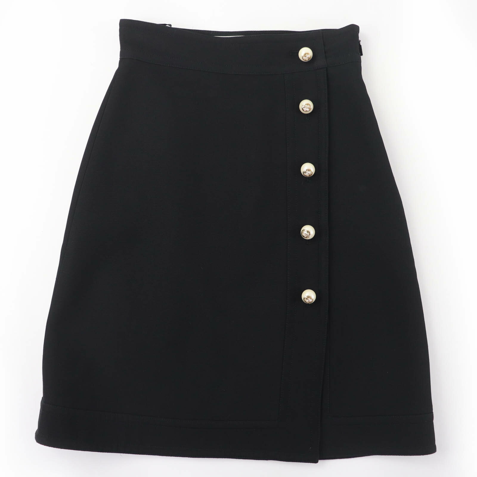 極美品☆GUCCI グッチ 761364 ウール ベルト付 フロントZIP タイトスカート ブラック 38 イタリア製 正規品 レディース【中古】