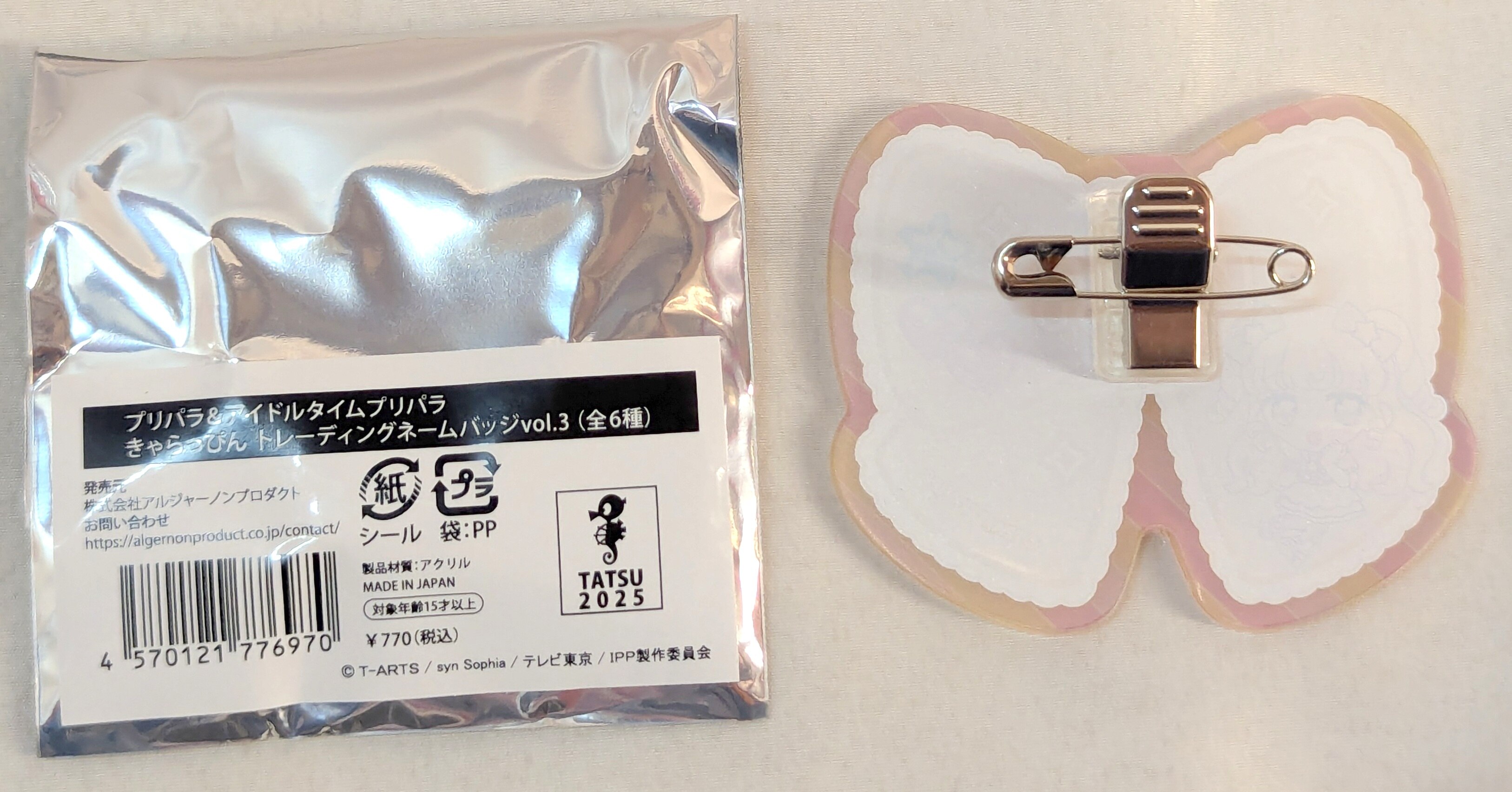 アルジャーノンプロダスト プリパラ きゃらぴん トレーディングネームバッジvol.3 にの