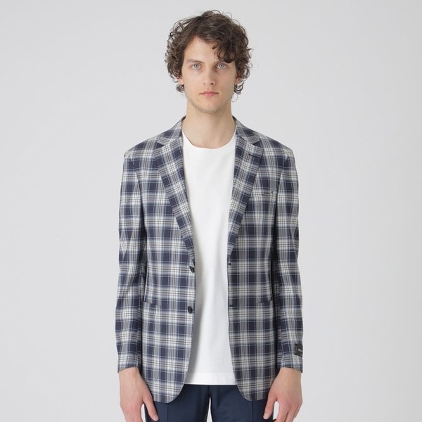 肩パットや固い芯地を極力省いたアンコン仕様のジャケットです。着心地の良さを追及した仕上がりとなっています。爽やかな雰囲気のタータンチェック柄のジャケットのため、清涼感をもってお召しいただけます。非常に軽く仕上げ、シャツ感覚で羽織れます。