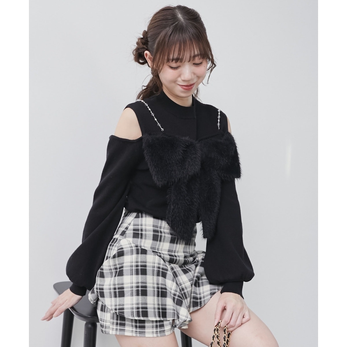 フロントにあしらった、ふわふわシャギーリボンデザインが1枚で華やかさと上品さを演出。
