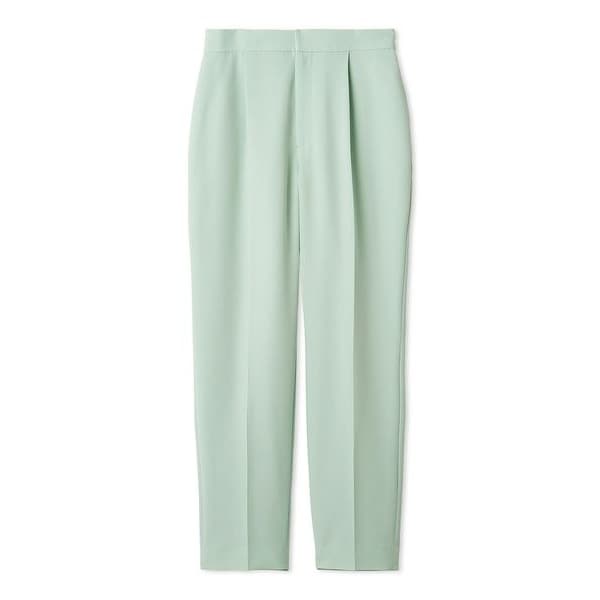 足のラインを拾いすぎない程よい細身のシルエットで、センタープレスを入れて縦ラインを際立たせたデザインに。