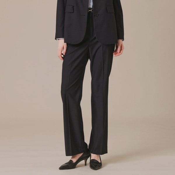 スッキリとした腰回りとストレートなシルエットが美しい、こだわりのフルレングスパンツです。程よく身体から離れたシルエットは、綺麗な立ち姿と動きやすさを兼ね備えています。裏地が無くサラッと着用しやすいアイテムです。同素材のジャケット(品番:G5E63700)とセットアップで着用いただけます。