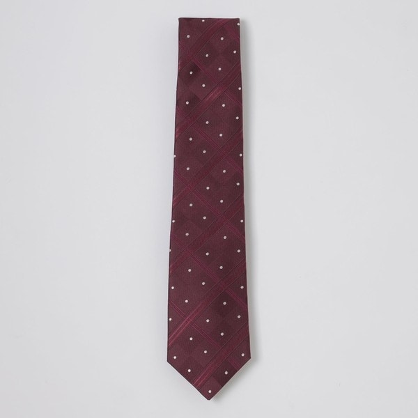 【光沢感のあるブロックチェック柄にドットを掛け合わせたチェックタイ】