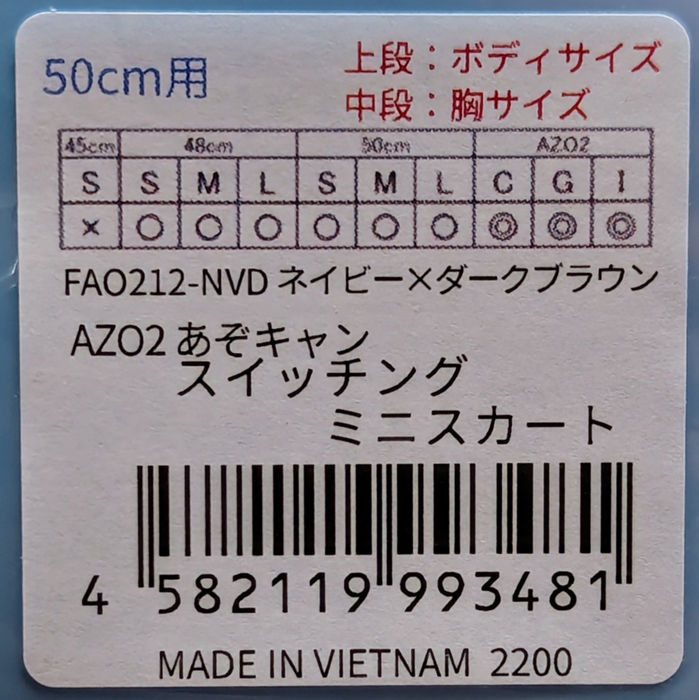 | ※『対応サイズ』 AZO2/50cm ※【状態】 未開封/パッケージイタミ ※合皮やゴム・金属を含む商品であった場合は経年劣化による表面の劣化ベタツキや破損・白化・錆がある可能性があります、ご注意ください。 ※写真に映っているもので全てです。 また商品の詳しい説明、状態の確認は『まんだらけ名古屋店』までお願い致します。 ご不明な点はHPからメールもしくはお電話(052-261-0700)までお気軽にご連絡ください。 |