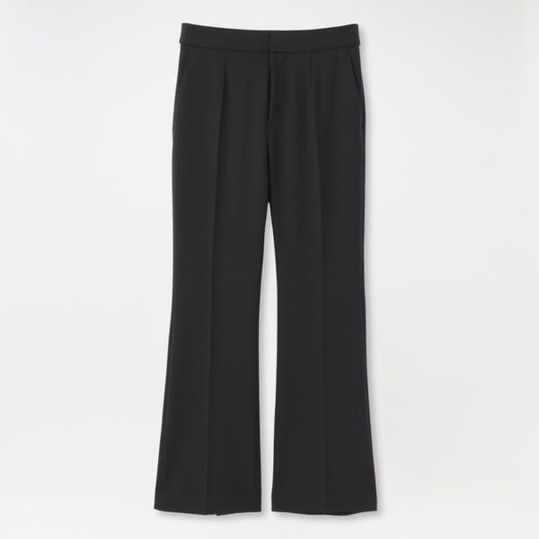 計算されたラインとスリットで魅せるスリムフレアパンツ