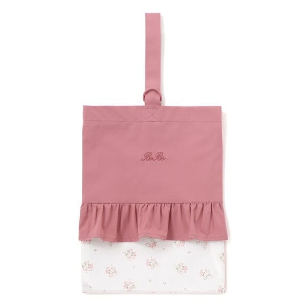 大ぶりなフリルが可愛らしいシューズバッグ。