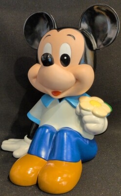 三菱銀行 ミッキーマウス座り水色服 カウンターサイズ貯金箱