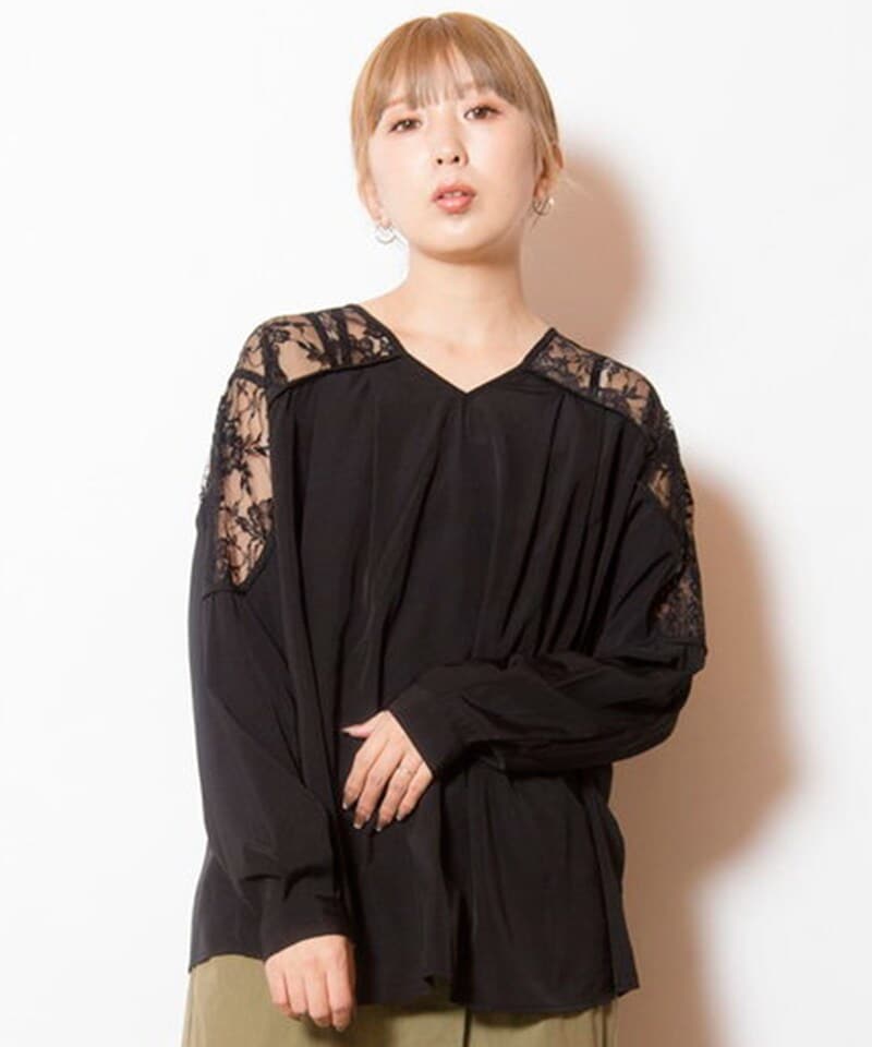 ショルダーラインに施されたレースがヘルシーな抜け感を演出。