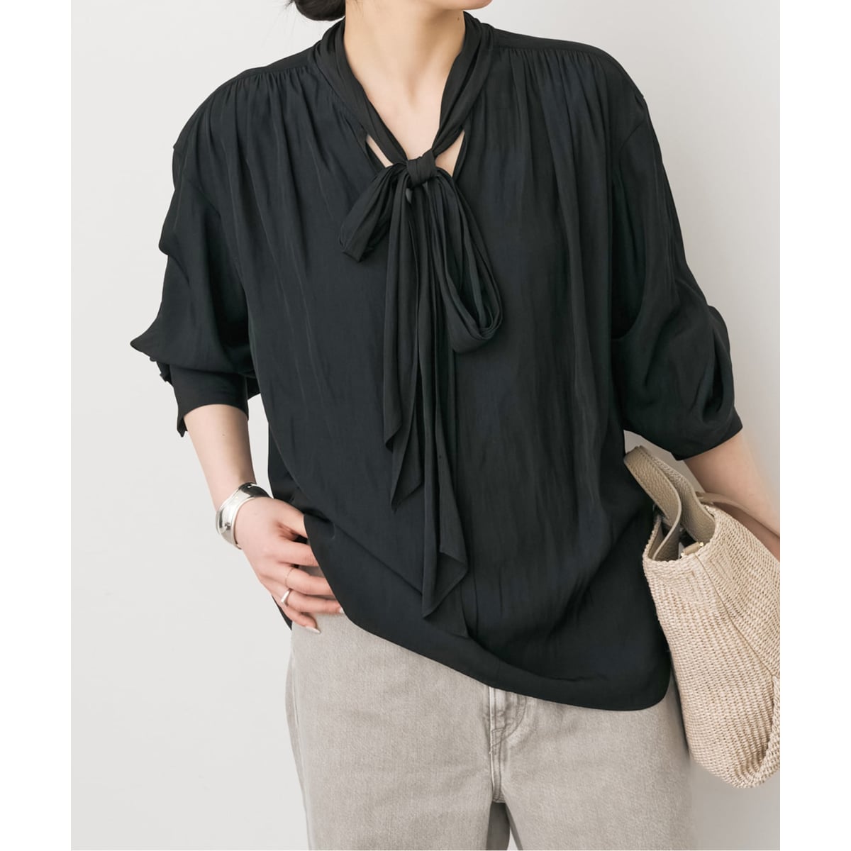 やさしい表情を引き出す、上品ボウタイブラウス。