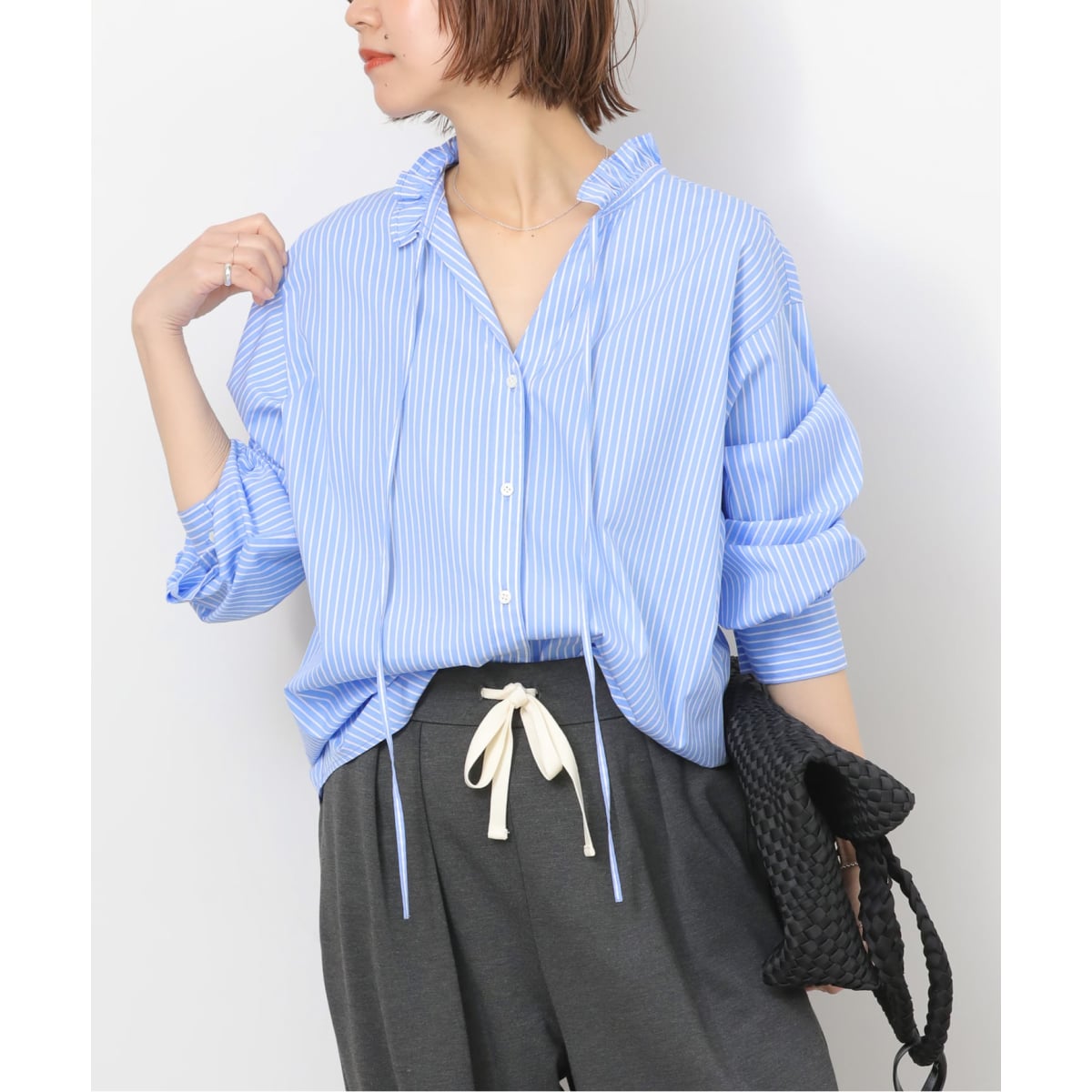 ◆フリルデザインが華やかなスタンドカラーブラウスに新色が登場!